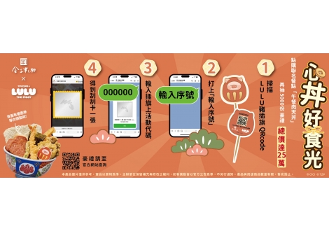 【金子半之助 X LULU豬】【金子半之助 × LULU豬】聯名活動 刮 5,000 張幸運券|25 萬獎項等你拿! 12/1 起期間限定推出「午餐肉天丼」。 凡點購聯名餐點即可獲得一張專屬刮刮卡,刮開並掃描 QRcode 即可參與抽獎! 各式好禮等你帶回家,還有機會抽到大獎:江戶前天丼乙碗!詳細資料 -
